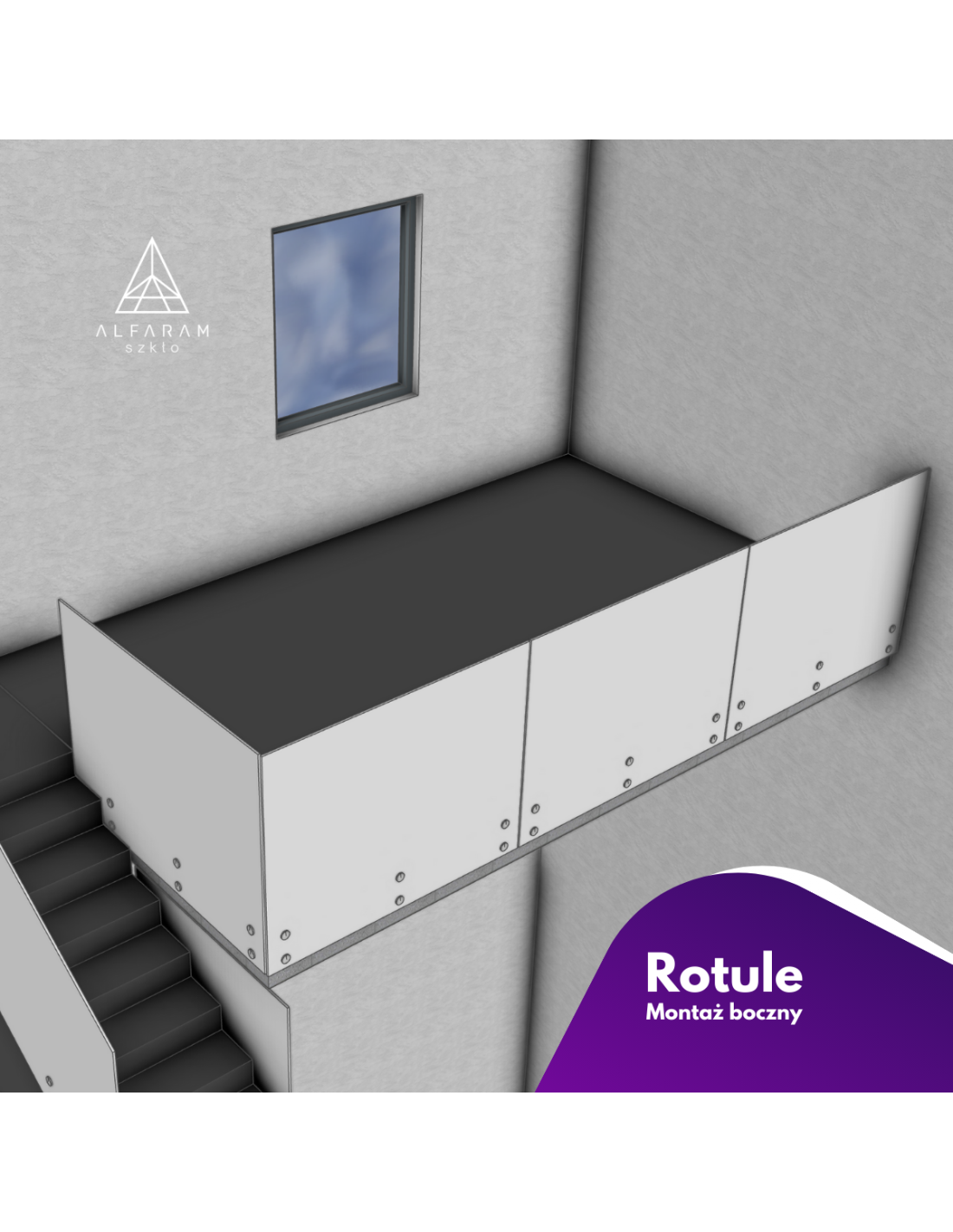 Balustrada szklana na rotulach punktowych - Rotule punktowe to specjalne elementy mocujące, które łączą szklane panele z konstrukcją nośną,