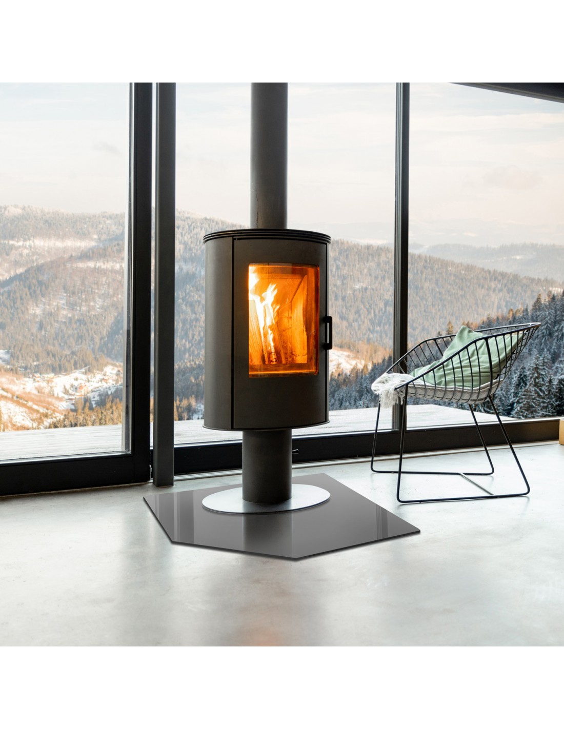 - Estetyczny design — szklana podstawa dodaje elegancji i nowoczesności wnętrzu, podkreślając urok kominka czy kozy. Wszystkie krawędzie szkła są starannie i dokładnie szlifowane dla zwiększenia bezpieczeństwa podczas użytkowania.