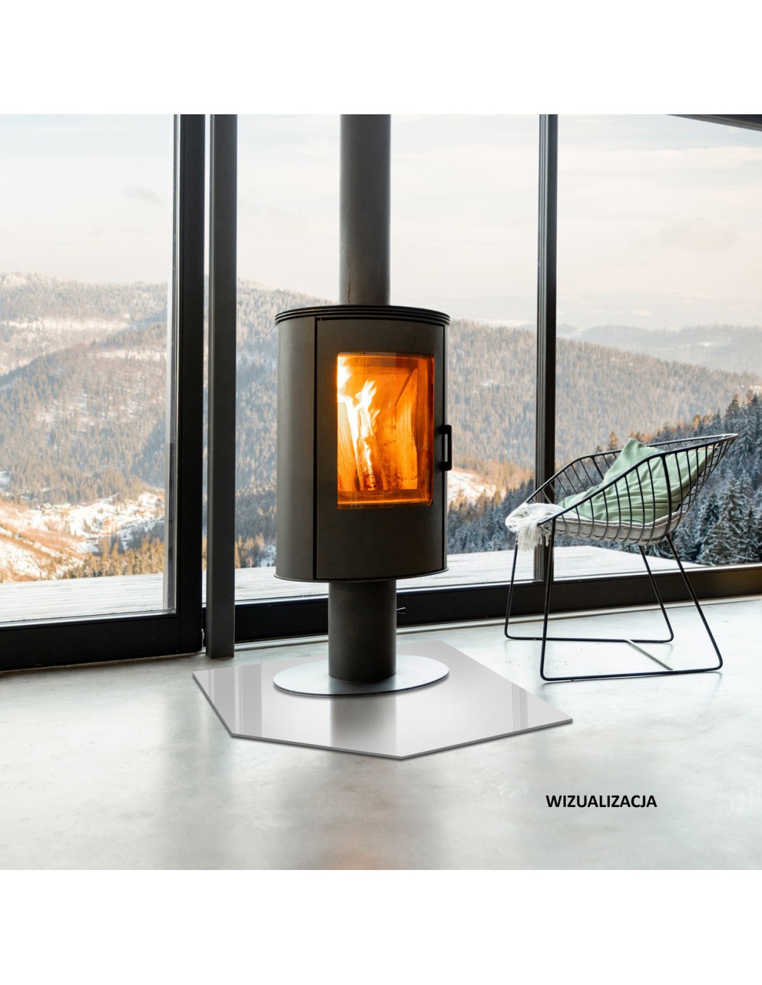 - Estetyczny design — szklana podstawa dodaje elegancji i nowoczesności wnętrzu, podkreślając urok kominka czy kozy. Wszystkie krawędzie szkła są starannie i dokładnie szlifowane dla zwiększenia bezpieczeństwa podczas użytkowania.