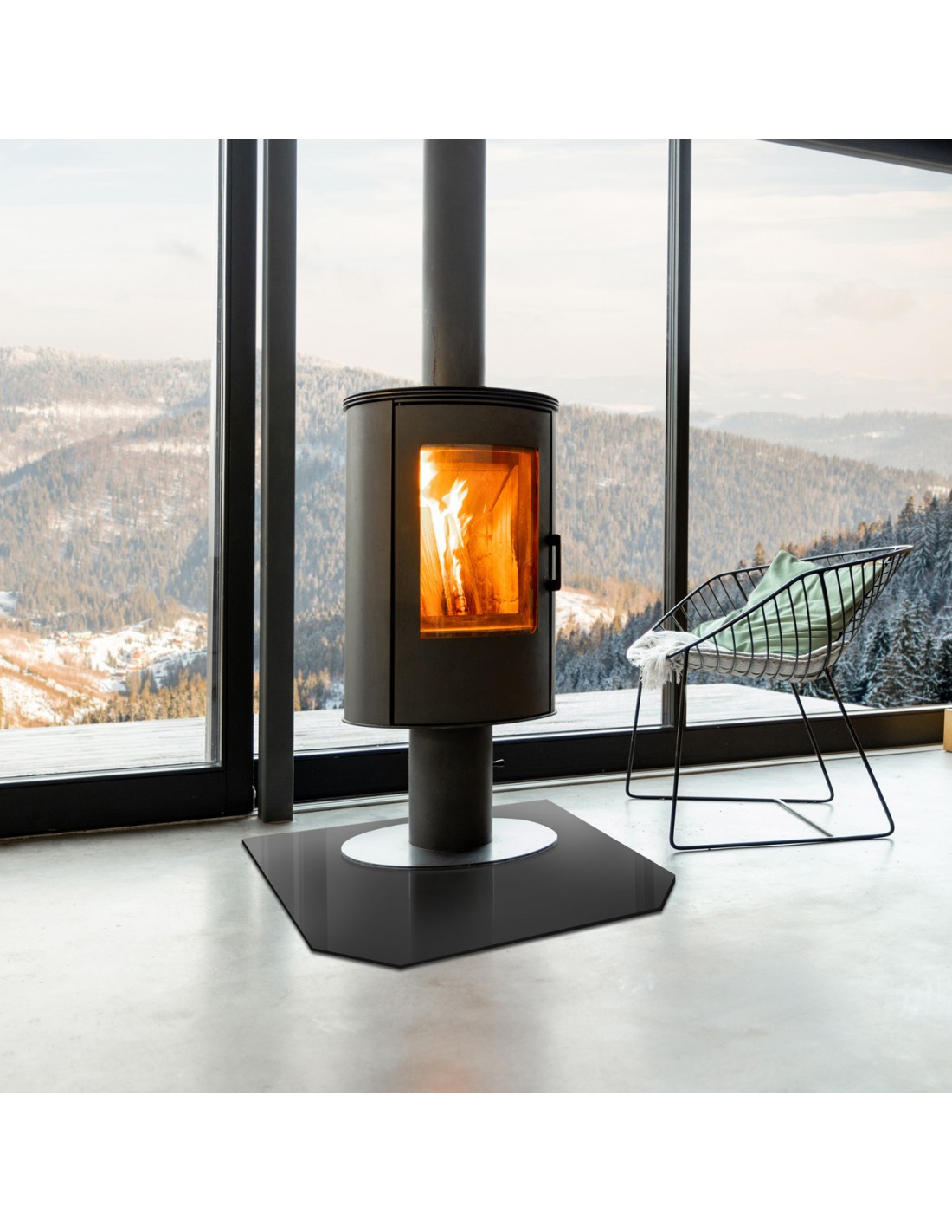 - Estetyczny design — szklana podstawa dodaje elegancji i nowoczesności wnętrzu, podkreślając urok kominka czy kozy. Wszystkie krawędzie szkła są starannie i dokładnie szlifowane dla zwiększenia bezpieczeństwa podczas użytkowania.