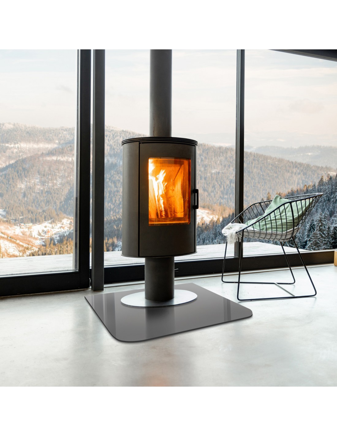 • Estetyczny design — szklana podstawa dodaje elegancji i nowoczesności wnętrzu, podkreślając urok kominka czy kozy. Wszystkie krawędzie szkła są starannie i dokładnie szlifowane dla zwiększenia bezpieczeństwa podczas użytkowania.